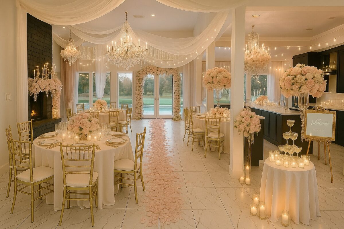 (Full-day, up to 12 hrs – includes indoor & outdoor spaces, tables/chairs, bridal/groom prep areas)